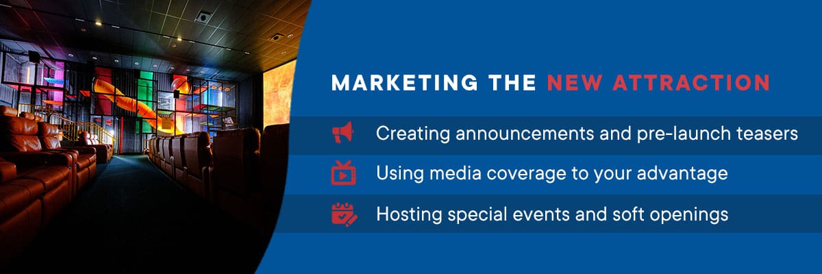 • Hosting special events and soft openings: Host special events to foster memorable experiences and generate word-of-mouth recommendations. Invite a limited number of guests, like school groups, sports teams and other local groups, to experience your attraction before anyone else. Broadcast your opening event to engage visitors who couldn’t attend.