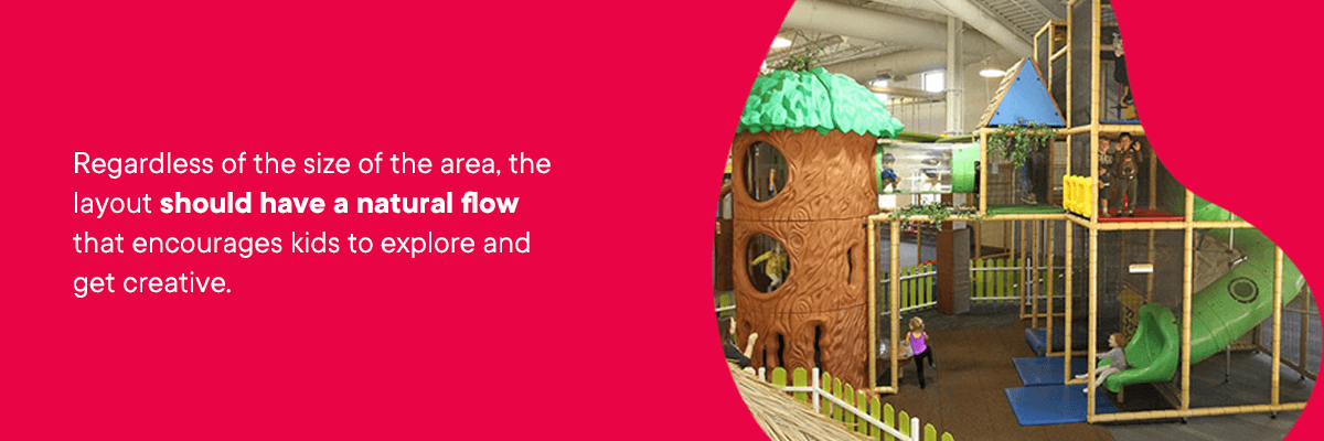 - Age groups and capacity: How you use the available space depends on the age groups you cater to and how many kids your playground can hold at a given time. Kids should be able to enjoy the activities without bumping into or disrupting one another.