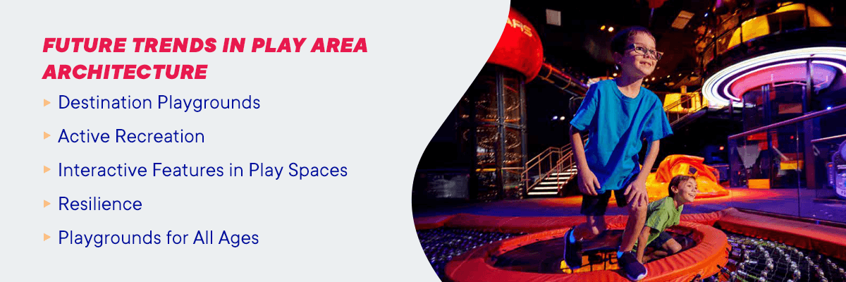 Designing a play space is an opportunity to reconnect with your inner child. It provides today’s kids with an immersive space that ignites their imagination and unites them with peers of all ages and abilities. A well-designed playground is a game changer, and future trends in play area architecture are a powerful tool to inform current play space design.