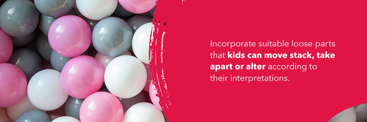 Playgrounds with sensory elements encourage kids to experience the world in colors and textures. An effective way of making your playground sensory-oriented is to incorporate suitable loose parts that kids can move stack, take apart or alter according to their interpretations. In playground designs, loose parts can be anything from balls and hoops to rocks and sand. You can also implement parts with auditory stimuli like bells or musical equipment.