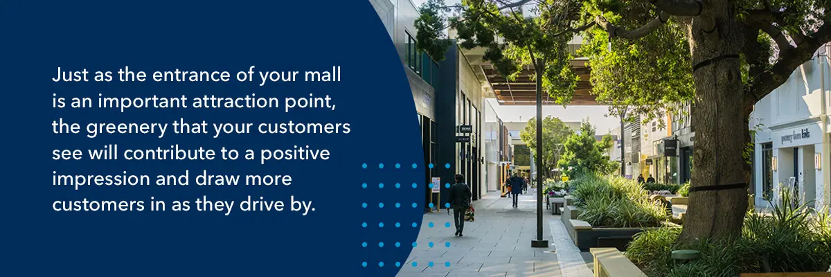 - Attracts customers: People are more inclined to visit and stay in a place with attractive landscaping and greenery. Having many bright, colorful plants around can make your mall look more inviting and welcoming. Plants can also reduce stress and make people feel more comfortable and at ease.
