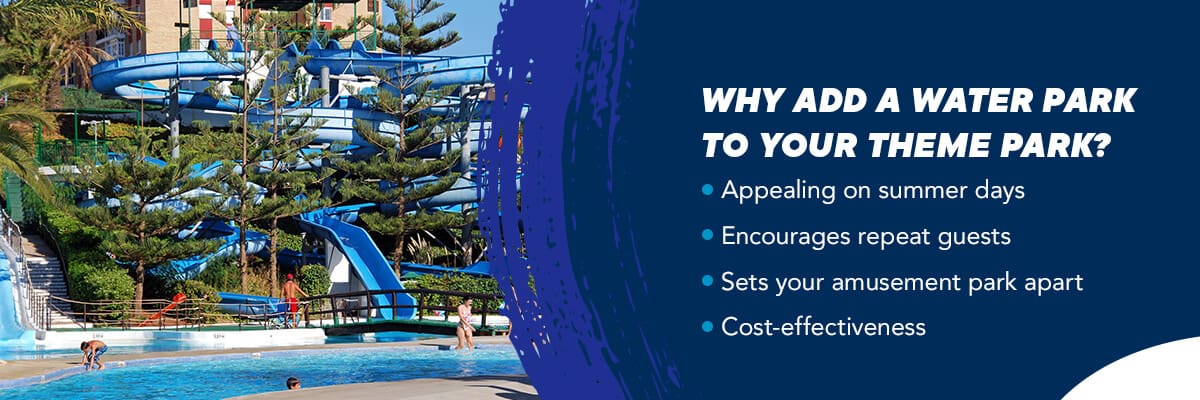 - Cost-effectiveness: Building and maintaining a water park can be much less expensive than expanding your theme park. Water parks can also require less space, which lets you make the most of your land, even if your space is limited.