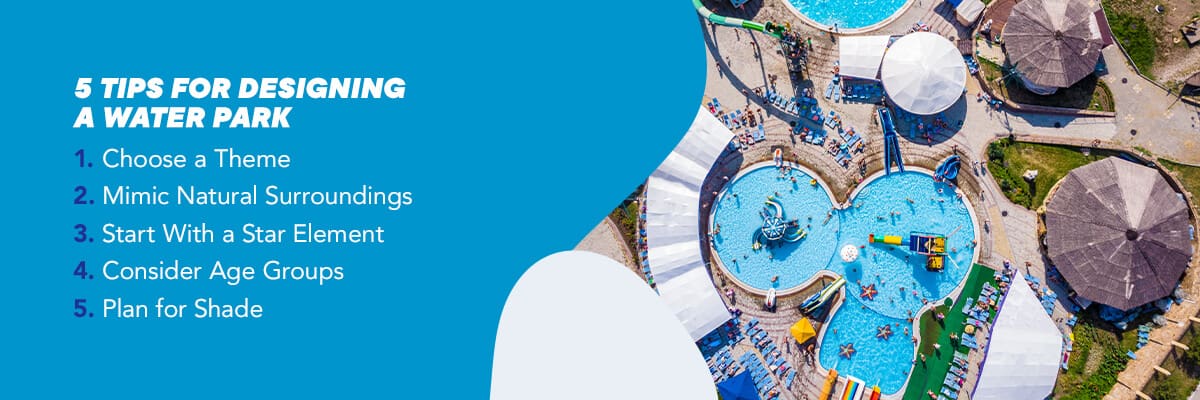 When designing a water park, you’ll want to spend your time finding the perfect amenities and attractions to draw people in. However, there is more to consider than just the fun rides. Also, keep in mind your park’s overall theme, the age groups that will visit and necessary rest areas, to name a few. Keep the following tips in mind when designing your new water park: